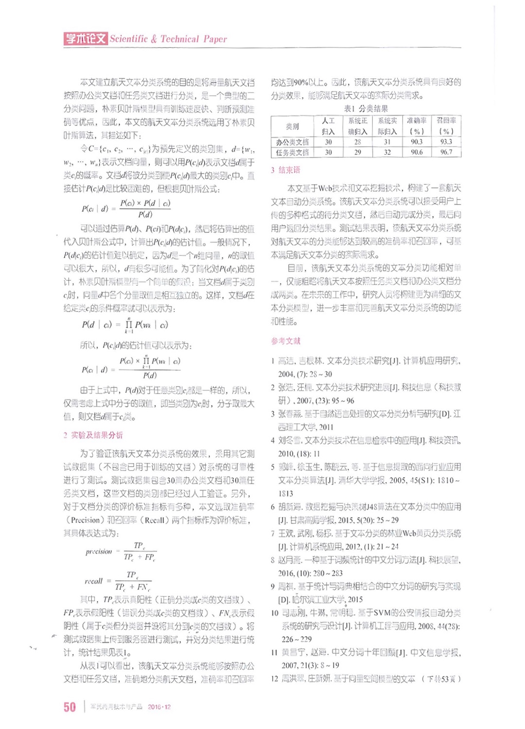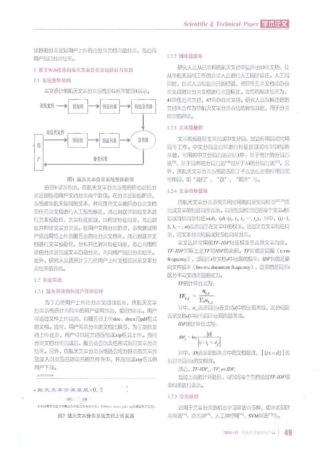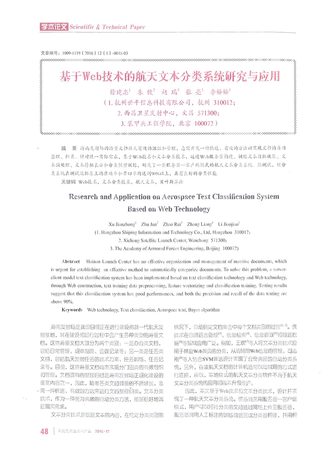 基于Web技术的航天文本分类系统研究与应用—发表于《军民两用技术与产品》2016.11