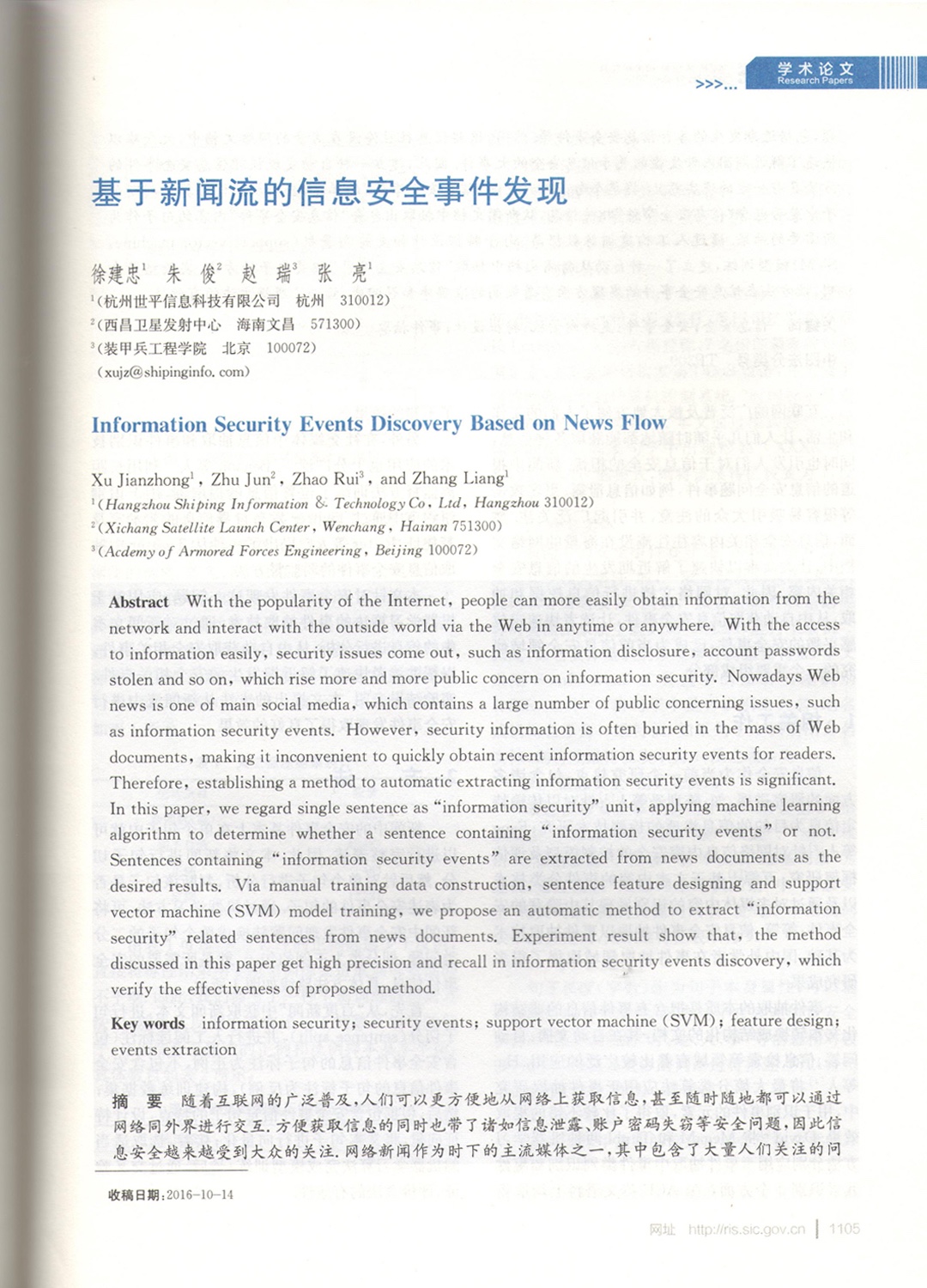基于新闻流的信息安全事件发现—发表于《信息安全研究》2016.12
